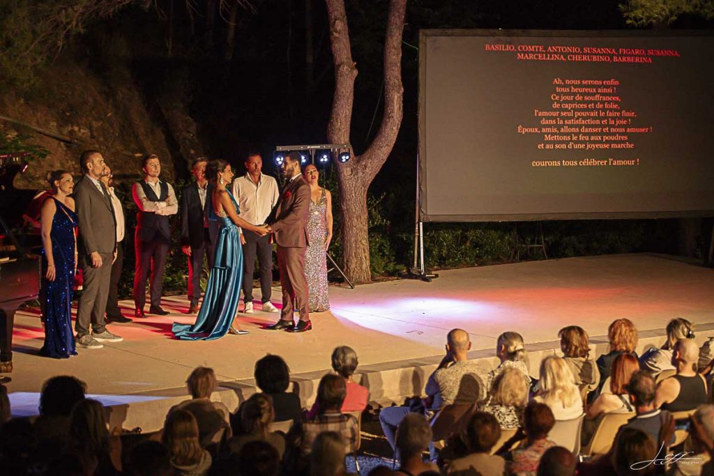 Ce ne sont pas moins de 9 artistes talentueux et d’un pianiste dévoué à les accompagner tout au long de ce spectacle qui nous ont offert une soirée à l’opéra au sein du théâtre de Verdure de la ville de Sausset les Pins.
